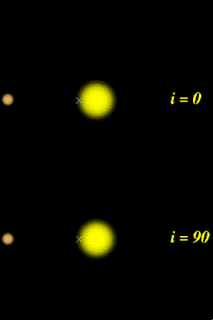 Par contre, en étant situé dans l'alignement du plan orbital, la distance Terre-étoile varie périodiquement et nous indique la présence d'un objet en rotation autour de l'étoile |