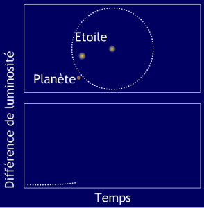 Cette méthode d'observation indirecte d'une planète est basée sur l'observation de la baisse de luminosité périodique d'une étoile due au passage d'un objet entre nous et l'étoile-hôte.