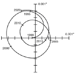 Le Soleil se déplace lentement sous l'effet des perturbations gravitationnelles des planètes (Jupiter et Saturne principalement).