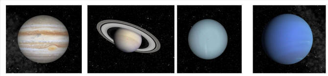 Il s'ensuit que les planètes externes sont beaucoup plus massives (c'est pourquoi elles sont également appelées planètes géantes) que les planètes telluriques et qu'elles possèdent d'épaisses atmosphères de gaz légers, notamment d'hydrogène et d'hélium, ainsi que des substances glacées, légères, comme l'eau, l'ammoniaque ou le méthane.
