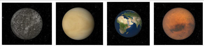 Les dimensions, la densité et les autres propriétés des planètes internes sont comparables à celles de la Terre; c'est pourquoi on les regroupe sous l'appellation de « planètes telluriques ». Il s'agit, en partant du Soleil, de Mercure, de Vénus, de la Terre et de Mars.