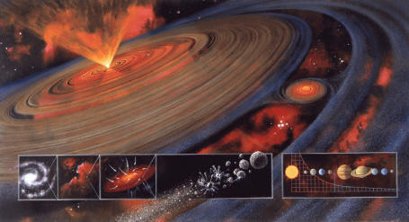 partir d'une nébuleuse primitive: la partie centrale de la nébuleuse s'est