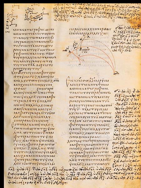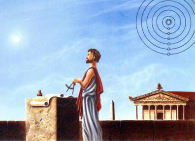 Le développement de l'astronomie fut marqué par Aristote, un philosophe grec du IIIe siècle avant notre ère dont les idées - erronées - allaient dominer la pensée scientifique pendant presque deux millénaires. Aristote s'appuya sur les conclusions de l'un de ses prédécesseurs, Platon, selon lesquelles le monde devait avoir une forme sphérique et le mouvement de tout corps céleste devait être circulaire et uniforme, c'est-à-dire à vitesse constante. |