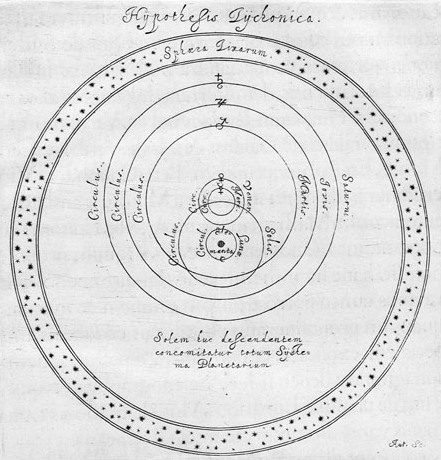 Ainsi, en 1588, le danois Tycho BRAHE pense que la Terre est immobile au centre de l’univers, et si les planètes tournent autour du Soleil, l’ensemble tourne autour de la Terre. On appelle cela le système géo-héliocentrique.