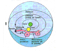 Un astronome d'Alexandrie, Claude Ptolémée, modifia le système d’Aristote au IIe siècle de notre ère, mais sans le remettre en cause. Pour Ptolémée, les corps célestes n'étaient pas liés à des sphères cristallines centrées sur la Terre. En fait, chaque planète se déplaçait sur un petit cercle, appelé épicycle, dont le centre lui-même se déplaçait en suivant un grand cercle centré sur la Terre, appelé déférent. En ajustant la taille et la position de tous les cercles mis en jeu, Ptolémée obtenait un système capable de reproduire avec précision les mouvements apparents des corps célestes. Ce double succès explique que le système de Ptolémée, qui améliorait celui d'Aristote dans la forme mais pas l'esprit, fut accepté jusqu'au XVIe siècle.