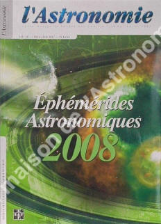 L'annuaire du bureau des Longitudes, édité chaque année, est un ouvrage indispensable à l'astronome amateur. Il y trouvera toutes les informations sur la position et les caractéristiques d'observation précises du Soleil, de la Lune et des planètes pour l'année 2007. Y figurent aussi les principaux satellites de Jupiter et de Saturne, les éclipses, les comètes périodiques, les étoiles brillantes, les astéroïdes. Le tout présenté sous forme de tableaux chiffrés, de cartes et de schémas en noir et blanc. Une partie du livre explique les méthodes de calculs des éphémérides. Commentaire de l'éditeur: Destiné aux astronomes, professionnels ou amateurs, cet ouvrage se décompose de la façon suivante : Les trois premiers chapitres de cet ouvrage contiennent : les données sur les différents calendriers et leur concordance, les fêtes légales en France, les différentes échelles de temps, les dates de décrets sur les heures légales en France métropolitaine parues au Journal Officiel depuis 1916 ; des notions nécessaires à la compréhension et à l'emploi des éphémérides contenues dans l'ouvrage. Les chapitres suivants fournissent des éphémérides astronomiques : les positions du Soleil et de la Lune ; les positions des planètes et de leurs satellites ; les positions des astéroïdes et des comètes ; les explications et des données pour l'observation de la surface du Soleil, de la Lune et des planètes ; des cartes du ciel, une liste de constellations et les positions et occultations des étoiles ; des données sur les éclipses de Soleil et de Lune et sur les phénomènes astronomiques ; la liste des observations astronomiques les plus connues.
