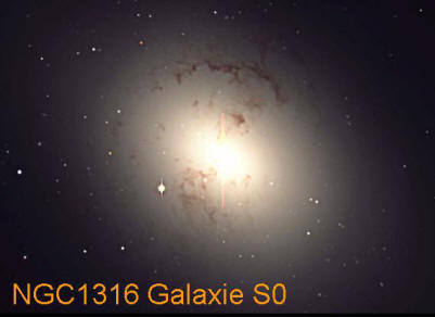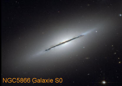 galaxies lenticulaires notées S0. Ces galaxies se composent d'un bulbe central brillant, à la manière des galaxies elliptiques, et d'une structure étendue en forme de disque qui l'entoure.