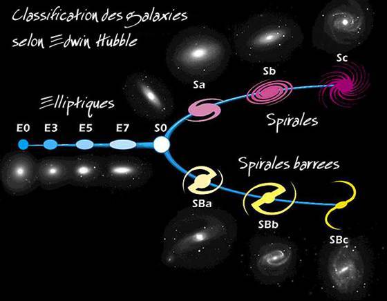absorption devant le disque. HUBBLE pensait qu'il devait y avoir une étape intermédiaire entre les elliptiques les plus aplaties et les spirales.