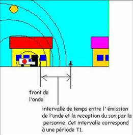 s'éloigne de la personne. Les intervalles entre les fronts d'ondes sont