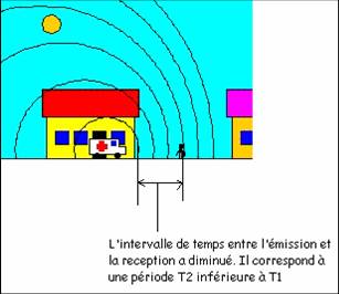 se rapproche de la personne les intervalles entre les fronts d'ondes se