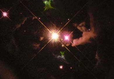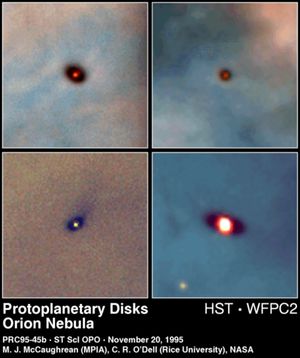 Les couches externes de la géante (composées d'hydrogène) peuvent être attirées par la naine et former autour d'elle un disque d'accrétion (voir photo ci-contre). Lorsque la densité de ce nuage est suffisamment importante et à cause des forces de friction interne, le gaz s'échauffe jusqu'au niveau de déclenchement des réactions de fusion de l'hydrogène. Une formidable explosion se produit à la surface de la naine blanche et peut multiplier par 10 000 (ou plus) sa luminosité. La naine blanche n'est que très peu affectée du fait de sa structure particulière. Après cette explosion, les couches d'hydrogène sont expulsées dans l'espace et une nouveau cycle d'accrétion pourra recommencer.... |