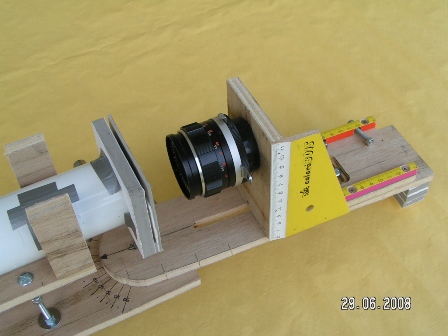 L'objectif photo sera fixé sur une bouchon d'objectif percé en son centre et centré sur l'axe optique, d'ou l'intérêt de pouvoir régler la position du tube équipé (voir plus haut).