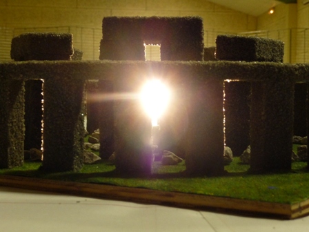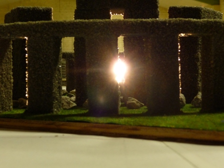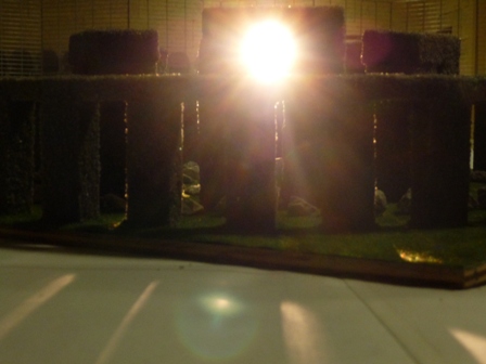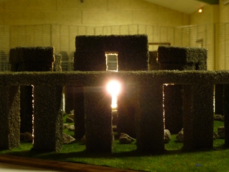 L’idée de construire une réplique en miniature de Stonehenge fût avant tout de démontrer son fonctionnement visuel par sa mécanique céleste tout en conservant l’authenticité du site. Simuler le lever du soleil le jour du solstice d’été (21 juin) par un jeu de lumière sur une caméra vidéo permettrait de mieux comprendre son principe et de mettre en évidence cette approche du réalisme de l’original.
