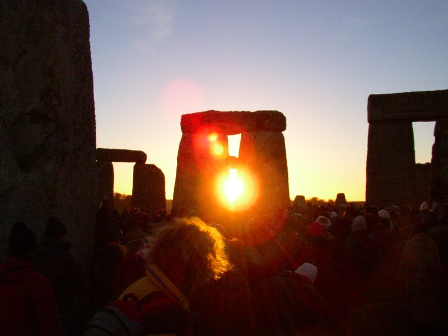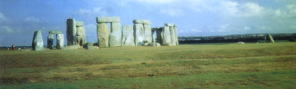 Stonehenge, « les pierres suspendues », est un grand monument mégalithique composé d'un ensemble de structures circulaires concentriques, érigé entre -2800 et -1100, du Néolithique à l'âge du bronze. Il est situé à 13 km au nord de Salisbury, et à 4 km à l'ouest d'Amesbury (comté du Wiltshire, Angleterre). |